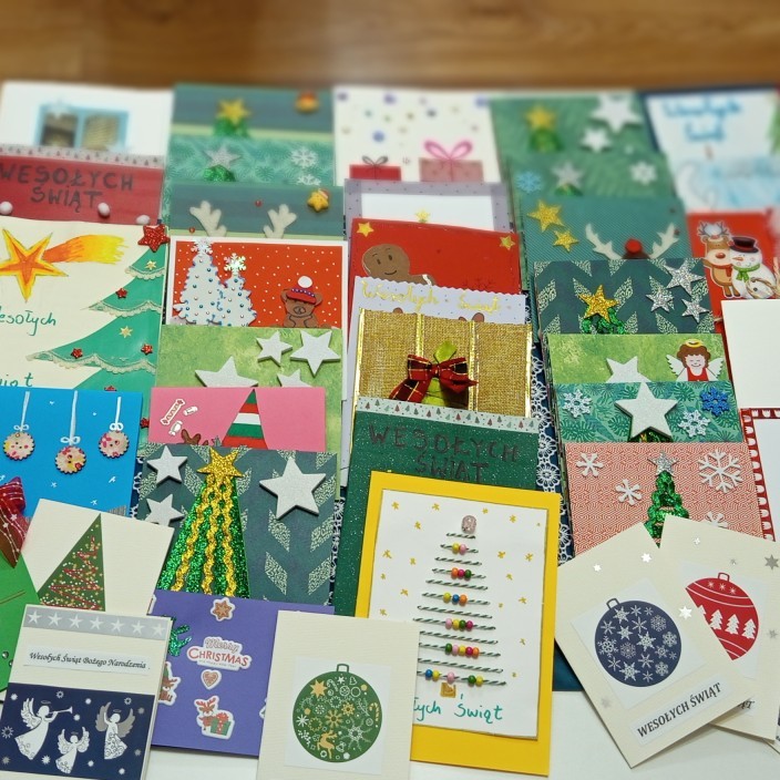 W ramach działań związanych ze Szlachetną Paczką uczniowie naszej szkoły przygotowali świąteczne kartki z życzeniami, które zostały przekazane darczyńcom akcji jako wyraz wdzięczności za ich pomoc i otwarte serca. Zaangażowanie uczniów przerosło nasze oczekiwania – kartek powstało znacznie więcej, niż było potrzeba. Pozostałe, równie piękne i pełne ciepłych słów, przekazaliśmy do Centrum Seniora Miasta Bielska-Białej, skąd trafiły do samotnych seniorów naszego miasta, niosąc im radość i świąteczne ciepło.