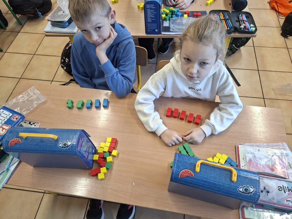 Klasa 2a świetnie bawiła się matematyką podczas dzisiejszej lekcji. Uczniowie, pracując z klockami, w praktyczny i ciekawy sposób uczyli się dzielenia. Klocki są częstym elementem naszych lekcji – dzięki nim łatwiej rozumiemy i zapamiętujemy zagadnienia matematyczne, a nauka staje się prawdziwą przyjemnością.