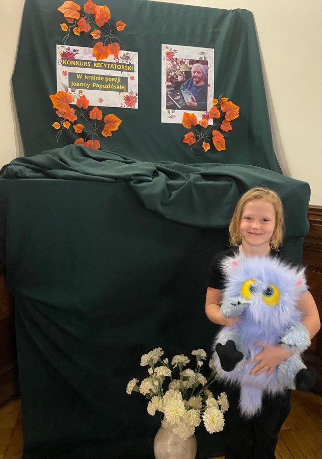 Z dumą informujemy, że uczennica klasy I – Hanna Szoblik – po zwycięstwie w eliminacjach szkolnych reprezentowała naszą szkołę w międzyszkolnym konkursie „W krainie poezji Joanny Papuzińskiej”.