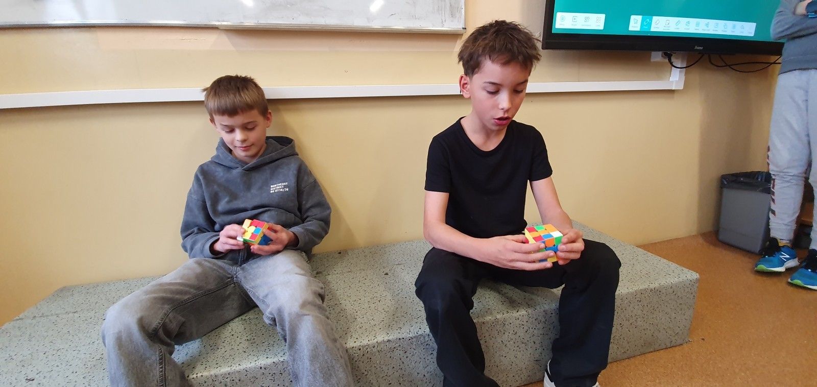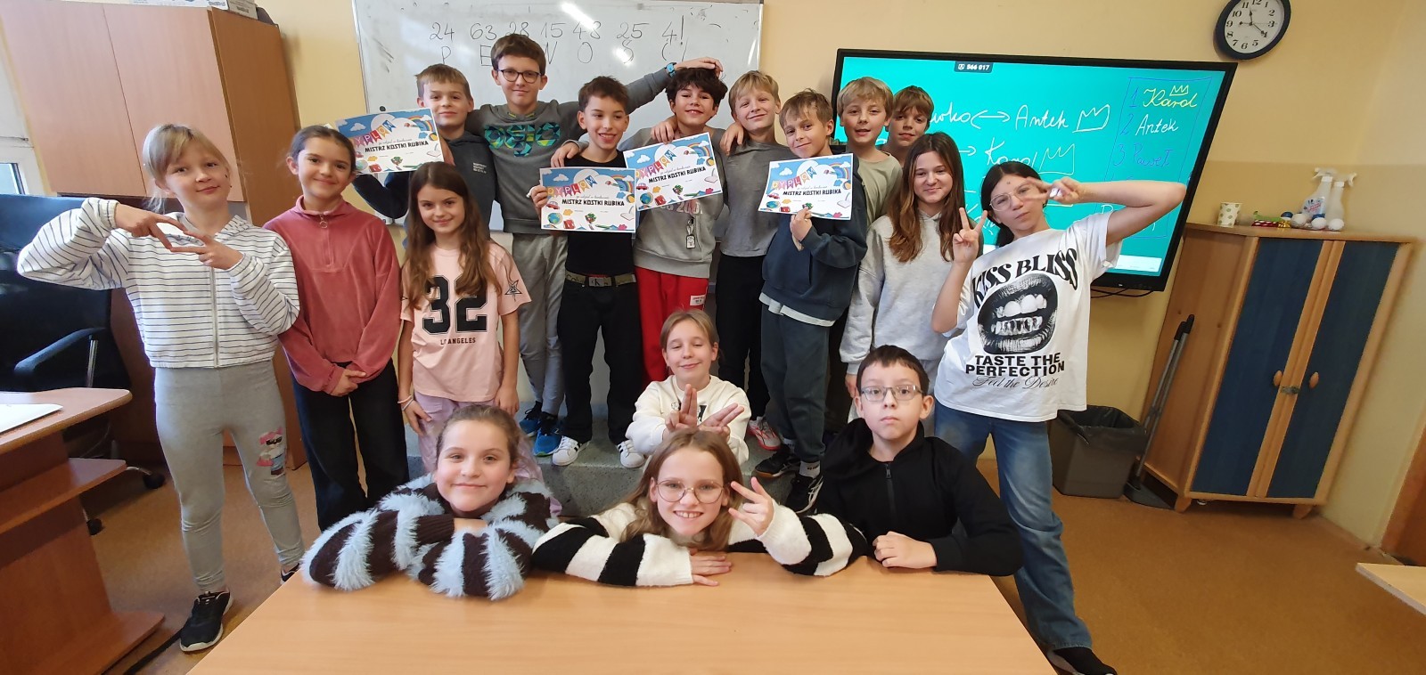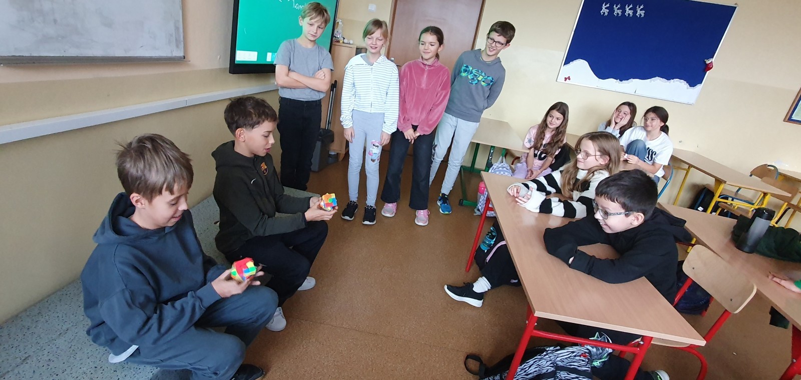 Listopadowa szaruga nie przeszkodziła uczniom klasy 5a – lekcję wychowawczą zamienili w emocjonujący konkurs o tytuł klasowego Mistrza Kostki Rubika!