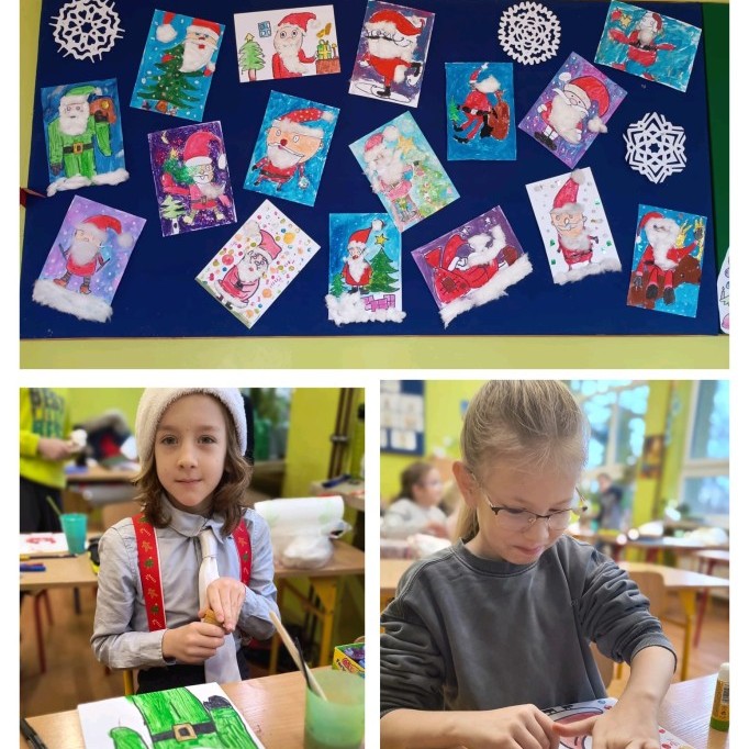 Klasa 3a wykonała wesołe Mikołaje, które wprowadziły wszystkich w świąteczny nastrój.