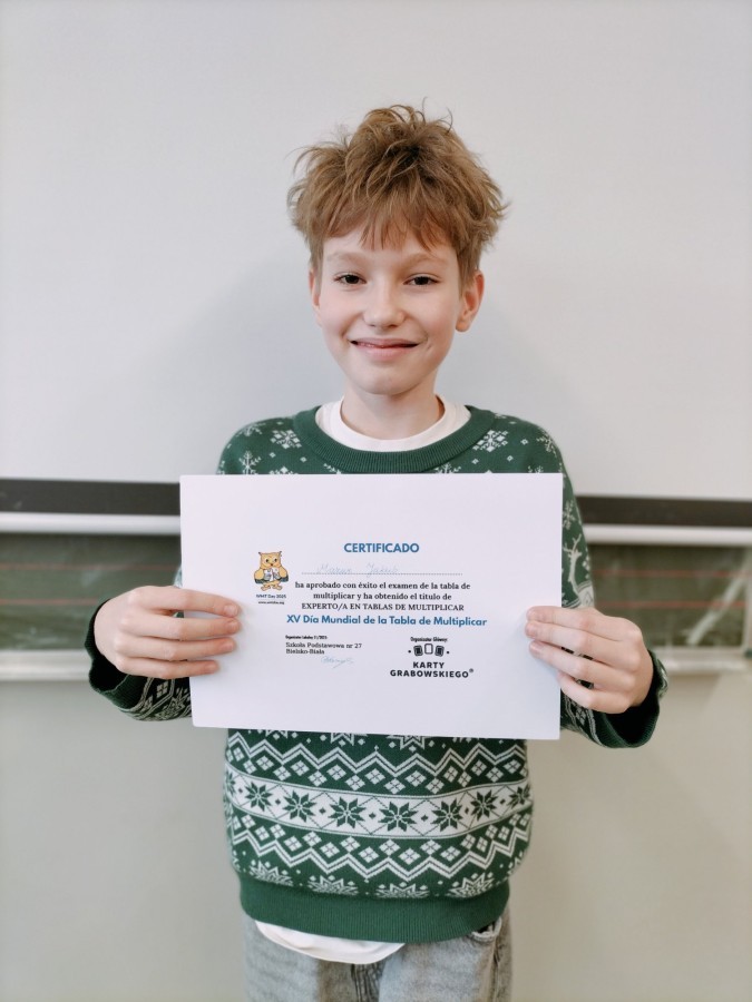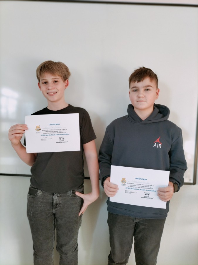 Uczniowie, którzy zdobyli tytuł Mistrza Tabliczki Mnożenia, nie poprzestali jednak na jednym sukcesie. Otworzyła się przed nimi możliwość udziału w kolejnych etapach egzaminu, podczas których mierzyli się z tabliczką mnożenia w języku angielskim , a następnie – podejmując jeszcze większe wyzwanie – także w języku niemieckim i hiszpańskim. Było to wyjątkowe połączenie matematycznej precyzji z umiejętnościami językowymi oraz doskonała okazja do sprawdzenia się na międzynarodowym poziomie🌍.