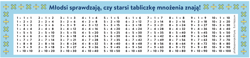 - zakładka z tabliczką mnożenia