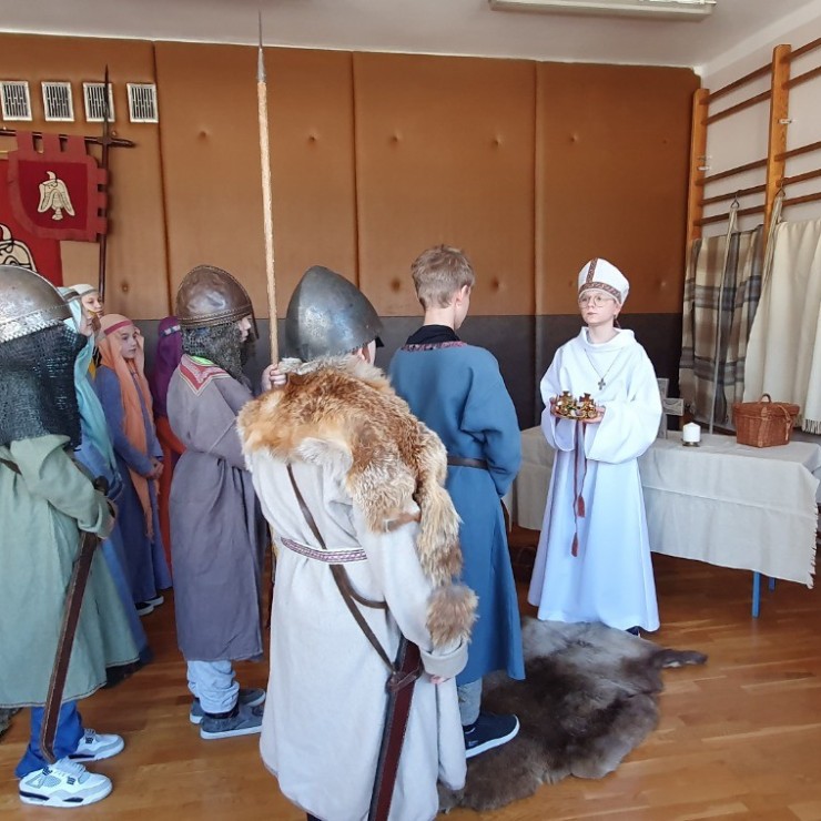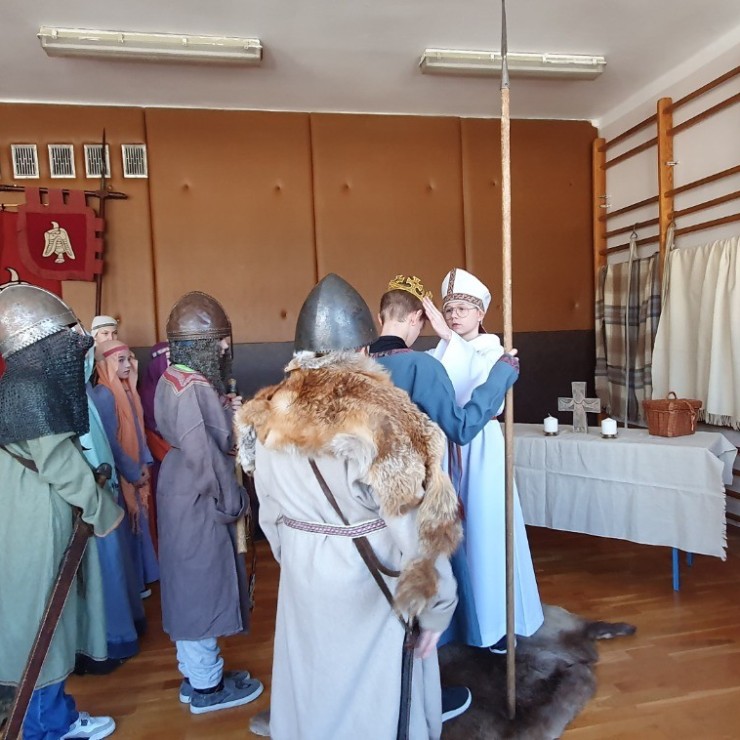Uczniowie z przejęciem i dumą odegrali scenę koronacji pierwszego króla Polski, a dyrekcja oraz nauczyciele ze wzruszeniem podziwiali ich występ. Na pamiątkę tej niezwykłej lekcji nauczycielka historii otrzymała od dzieci motankę – lalkę ręcznie wykonaną z kawałków materiałów i nici.