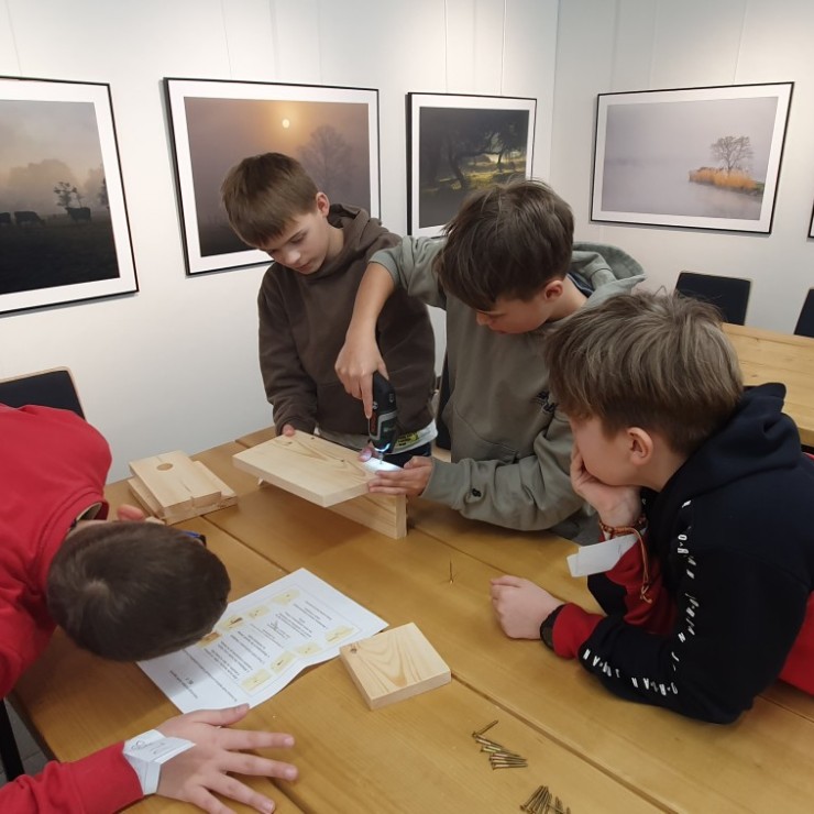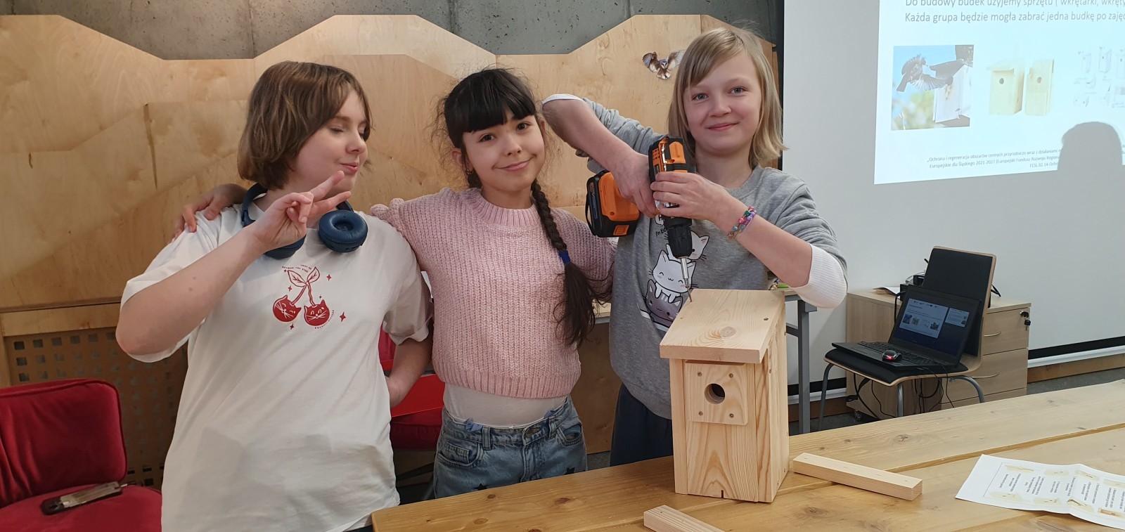 Na warsztatach ornitologicznych poznali wiele ciekawostek o życiu ptaków, ich zwyczajach i sposobach ochrony, a największą atrakcją było własnoręczne budowanie budek lęgowych.Wciągające zajęcia i super prowadzenie sprawiły, że nauka stała się przyjemnością.