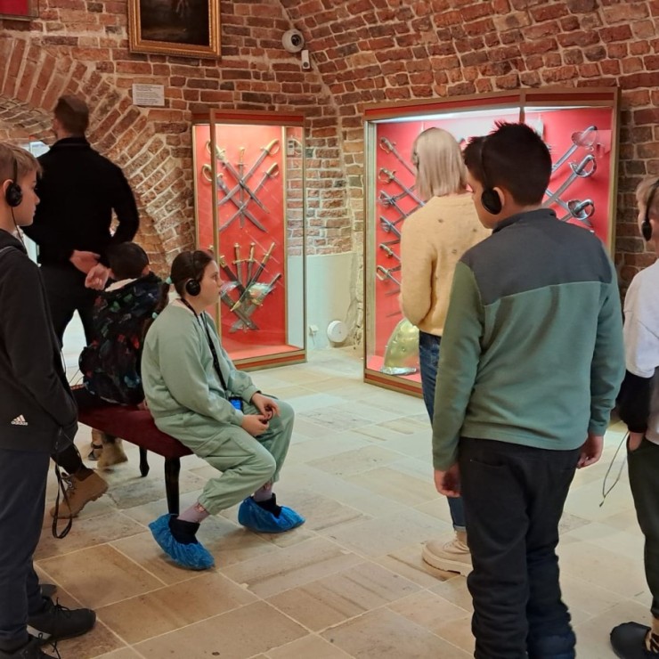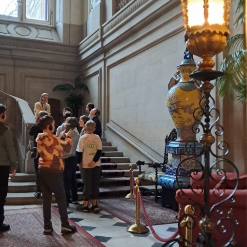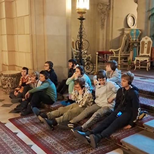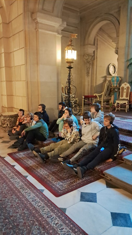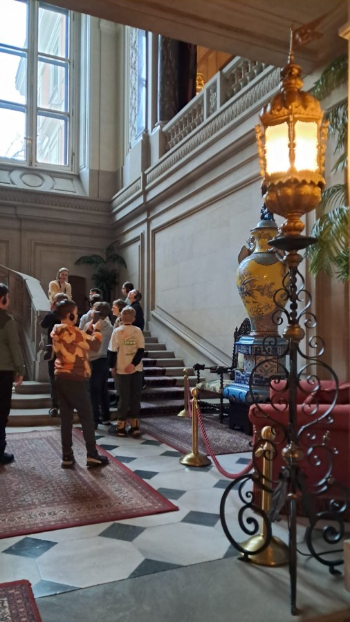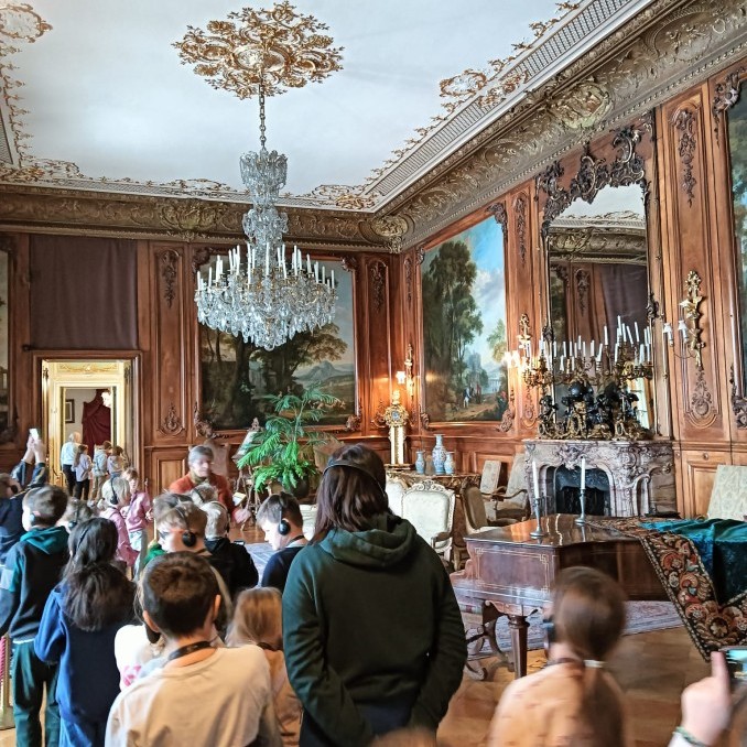 Zwiedzanie poprowadziły niezwykle sympatyczne i kompetentne panie przewodniczki, które w ciekawy sposób opowiadały o dziejach pałacu, jego dawnych właścicielach oraz codziennym życiu w rezydencji. Dzięki ich zaangażowaniu uczniowie mogli nie tylko zobaczyć piękne komnaty, ale także poznać wiele fascynujących ciekawostek związanych z tym miejscem.