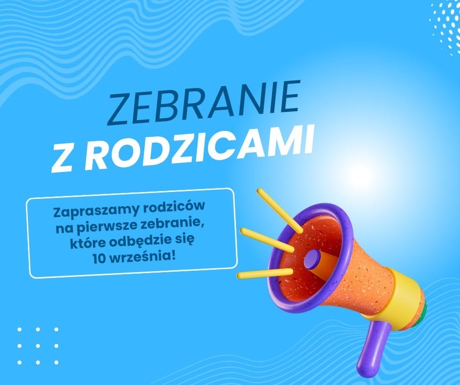 Szanowni Państwo, uprzejmie informujemy, że w dniu 10 września 2025 r. (środa) odbędzie się zebranie z rodzicami uczniów naszej szkoły.